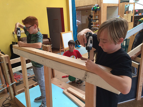 En esta escuela los niños aprenden construyendo y creando con sus manos, a partir de sus propias ideas, investigando en el mundo real y utilizando herramientas de verdad.